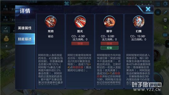 被动-死吻:阿轲在敌人身后发起的攻击,必定暴击(包括技能),但是基础的暴击伤害较低(阿轲的暴击伤害会随着暴击几率的增加而提高)。阿轲所有的正面攻击,都不能产生暴击效果。