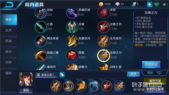 六神装:无尽战刃+急速战靴+闪电匕首+破甲弓+泣血之刃+宗师之力