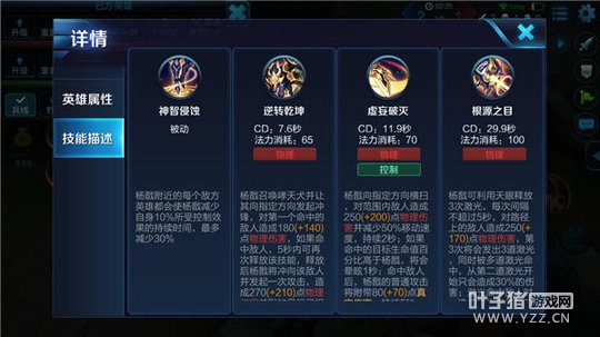 被动-神智侵蚀:附近每个敌方英雄都使得杨戬减少自身受控制的时间,最多叠加三层。