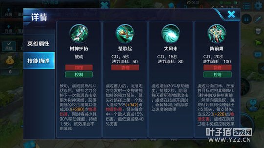 被动-树神佑护:脱战后,虞姬的下一发普攻射程会更远,并对命中的目标造成高额物理伤害和减速效果。
