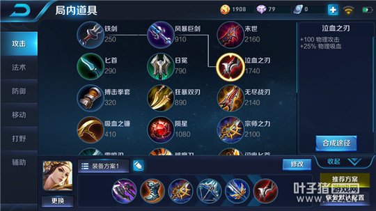 破军是补足伤害的关键,高额的物理攻击加成配合被动-破军让虞姬拥有瞬间秒杀敌方脆皮的能力。泣血之刃具有高额的物理攻击和物理吸血加成,让虞姬的续航能力有一定的保障。