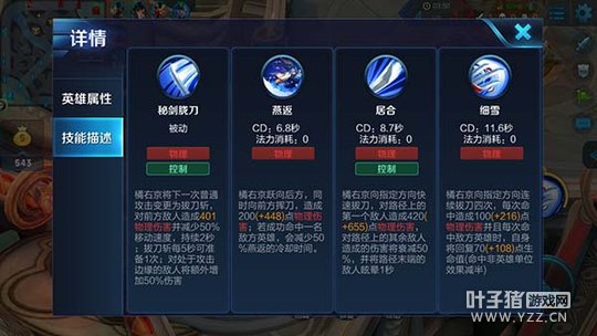 橘右京每过数秒,下一次的普通攻击会变成拔刀斩,对前方的敌人造成物理伤害和减速,对处于攻击边缘的敌人能造成额外的伤害。被动是橘右京很好的消耗和留人技能,在前期利用被动能远距离对敌人进行消耗,而且敌人不易躲避,另外线上也可以用被动推线,缓解兵线压力。