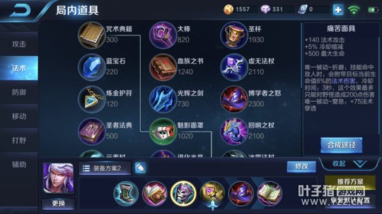 六神装备:抵抗之靴、噬神之书、痛苦面具、辉月、博学者之怒、贤者的庇护