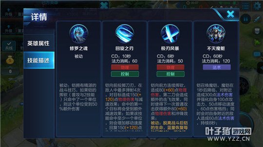 二技能-极刃风暴:二技能为铠的主点技能,有突进有控制,而且拥有极短的冷却时间,配合被动的普攻伤害,简直就是后排的梦魇,辅以宗师之力的额外伤害,输出简直逆天。这也是铠单挑无敌的重要原因之一。
