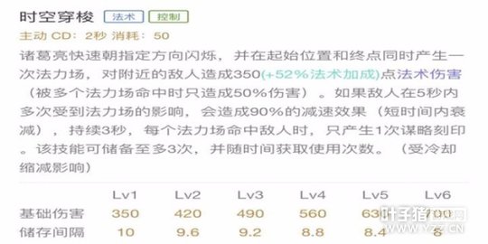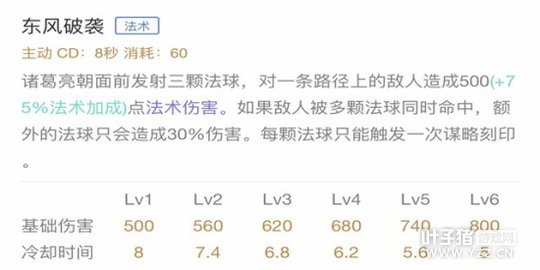 数值分析:基础伤害随着等级提升而增加,后期达到了700,储存间隔8秒,二技能的多段位移,让诸葛亮生存能力大大提升,用来追击敌方或者逃生很好用,如果是贴近敌方英雄时,还可以利用二技能的减速配合一技能贴身释放快速刷新被动,来快速收割队友,建议副点。