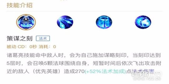 技能解析:诸葛亮使用技能时,会为自己叠加印记,到达五层以后变成法球围绕身旁,在短暂时间后依次飞出攻击附近的敌人(优先英雄)法术伤害。法球在1秒内连续命中同一目标时,伤害会衰减到20%,被动是诸葛亮持续输出和远程消耗的核心,使用一技能时候如果贴近释放可以快速叠加三层印记,加快刷新被动法球。