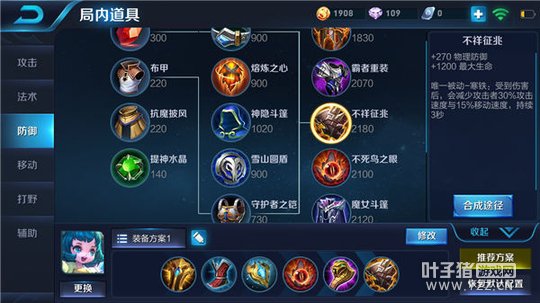 不祥征兆:这件装备有较高的物理防御和最大生命加成,被动-寒铁能降低攻击者的攻速移速。