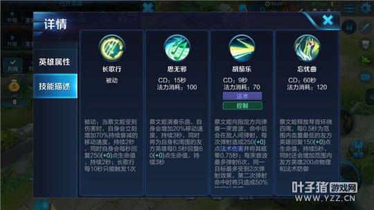 一技能-思无邪:蔡文姬持续为自身和周围的友军回复生命值,并提高自身的移动速度。