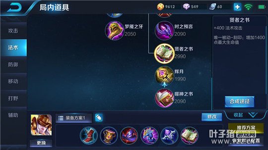 六神装:冷静之靴、圣杯、博学者之怒、回响之杖、虚无法杖、贤者之书