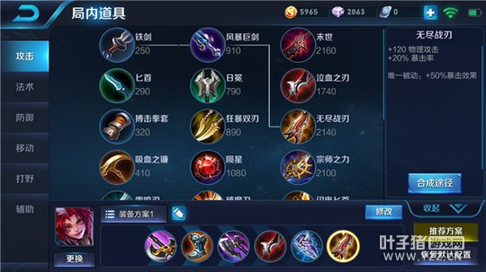 六神装:巡守利斧+急速战靴+暗影战斧+泣血之刃+冰痕之握+无尽战刃