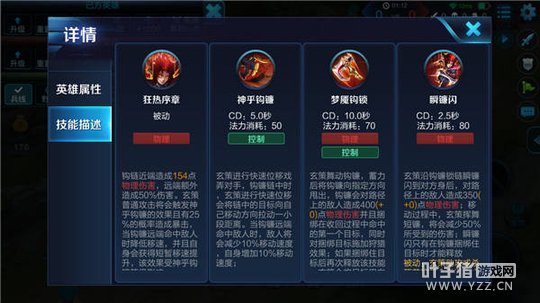 被动-狂热序章:百里玄策近端钩链将会减少物理攻击伤害,远端钩链造成额外物理伤害,且每次普通攻击带有一定概率暴击。当远端钩链攻击敌方时,自身增加移速,敌方受到减速。
