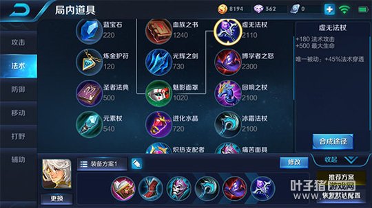 六神装:噬神之书、冷静之靴、痛苦面具、冰霜法杖、博学者之怒、虚无法杖