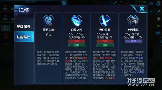 被动-修罗之魂:当铠的普通攻击或极刃风暴只命中一个目标时,造成额外伤害。