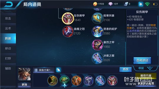 冰痕之握能在牛魔释放技能后,下一次普攻附带额外伤害和范围减速的效果,有利于牛魔为队友创造良好的输出环境,并且冰痕之握本身具备的物理防御和冷却缩减两个属性对牛魔也是不错的属性。敌方物理输出皮实怎么办,当然是出反伤刺甲啦,反伤刺甲能将所受的部分物理伤害返还给对方,还有极高的物理防御加成,是对抗物理英雄的绝佳选择。