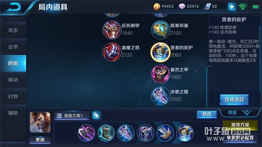 六神装:暗影战斧、抵抗之靴、冰痕之握、魔女斗篷、破军、贤者的庇护