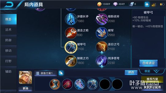 缺点:这套装备限制了后羿的收割能力,无法在团战中及时的收割敌方残血英雄,无法作为团战中的输出核心,需要己方法师英雄亦或是打野英雄承担。