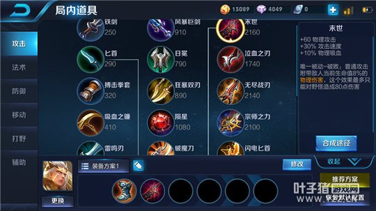 末世是后羿的核心装备,也是后羿能够选择半肉出装,却依然具备一定的输出能力的重要原因。末世所为后羿提供的攻击力,攻速以及吸血能力都是次要的,着重点在于末世的被动技能,能够对敌方英雄造成百分比的伤害。但后羿的被动技能所赋予其的不仅仅是攻速的加成,额外赋予了后羿进行持续多段伤害的能力,即后羿可凭借被动技能不断的触发末世的被动效果,极大地提升了后羿在游戏任何一个时期的输出能力。即使在游戏前中期面对敌方坦克英雄依然能对其造成实质性的伤害。