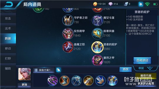 装备推荐:暗影战斧+急速战靴+破甲弓+制裁之刃+破军+贤者的庇护