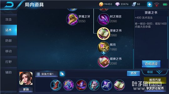 六神装:冷静之靴、回响之杖、博学者之怒、痛苦面具、虚无法杖、贤者之书