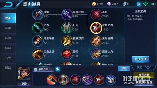 前期刘备选择打野刀出门,升级追击刀锋击杀野怪提升自己的攻速,让刘备在前期具有不错的输出能力,而急速战靴则是提升移动速度,增强刘备的游走能力,攻速提升让刘备在前期可以疯狂输出。末世提升攻速、物理攻击和物理吸血,强化刘备输出的同时,让刘备具有不错的续航性。暗影战斧提升物理攻击、血量和冷却缩减,增强刘备输出的同时被动效果可以让刘备粘着对手去打,同时物理穿透的增加也让刘备可以轻松打击坦克英雄。泣血之刃提升物理攻击和物理吸血,大幅度强化刘备的续航性。最后选择破军大幅度增强刘备的物理攻击,被动让刘备可以直接秒杀残血英雄。
