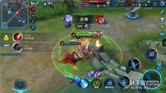 总结:铠的一技能在自身血量过低的情况下,命中敌人之后可以有效的为自身回复一定的血量,在与敌方英雄作战时,更是能够瞬间扭转战局,让铠拥有近乎无限的续航能力和击杀能力。