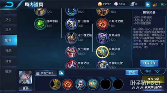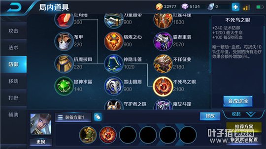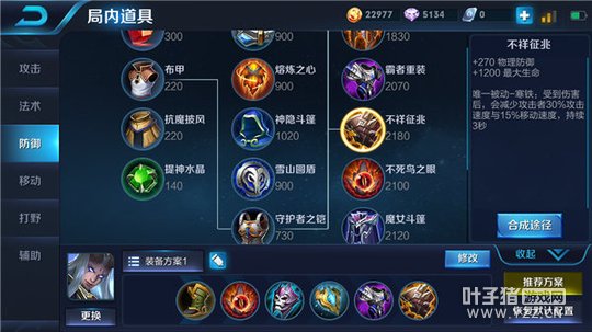 鞋子的性价比很高,尤其是影忍之足,在游戏的任何一个时期都适用。影忍之足主要提升东皇太一的物理防御能力以及移动速度,增强其抗伤能力以及一定程度的机动性,可以在中后期的团战中为己方承担足够多的伤害。但影忍之足给予东皇太一最大的增益在于减免东皇太一所受百分比的普攻伤害,在游戏的后期对抗敌方射手英雄时会有奇效。