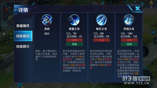大招让赵云拥有了强力的开团手段,他不仅可以对目标区域的敌人造成击飞效果及物理伤害,而且还能标记敌人为感电目标,在接下来的一段时间内,赵云的普攻及技能将对感电目标造成额外伤害。玩家可以利用此技能强突敌方后排,与一技能配合能够实现超远距离的追击或者逃生。一旦技能命中关键目标,那么赵云会对感电敌人进行高额的输出,敌方后排的生命安全将受到极大程度的威胁。