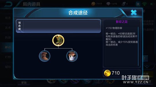 分析:移速装能够提高赵云的机动性和灵活程度,便于他更高效的支援和游走。而移速装的选择,我们推荐做出影忍之足或者抵抗之靴。影忍之足能够提高赵云前期对抗敌方物理英雄的能力,装备带来的减少普攻伤害的效果更是他可以轻松在上路抗压,或者减少不必要的损伤。而抵抗之靴更多的是帮助他减少被控制的时间,当玩家面对控制体系时,一定要选择这件移速装。