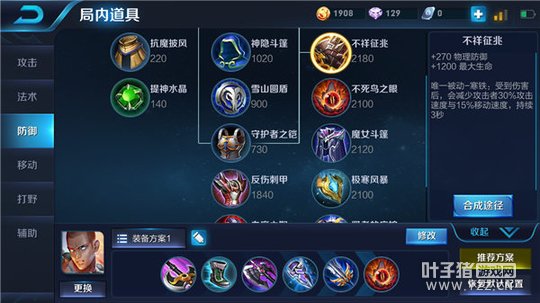 巡守利斧能提高达摩对野怪的伤害和击杀后所获得经验,并能将惩击升级为寒冰惩击,提高gank效果越好。抵抗之靴提高达摩的移速和法术防御,被动减少达摩的受控时长。