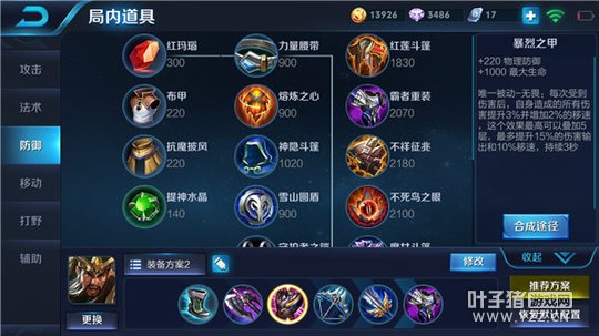 六神装:抵抗之靴,暗影战斧,暴烈之甲,破甲弓,破军,霸者重装