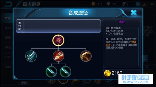 末世算得上是射手英雄前期必备的一件攻击装备了,装备自身的属性加成较为均衡,无论是物理攻击、攻击速度,还是物理吸血,都有着不错的属性提升,兼顾了鲁班七号在前期实战中的方方面面。