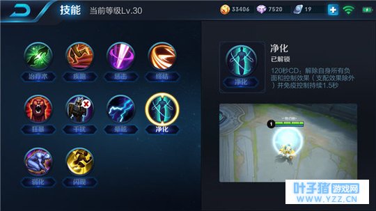 解析:貂蝉的主要输出方式就是开启大招后不断利用二技能和被动技能制造输出,同时二技能也是貂蝉生存能力强的关键,但这时若遭到敌军英雄的控制无法释放二技能,则会很快遭到敌军击杀,因此携带召唤师技能净化,貂蝉就能更好的活跃于战场,也为貂蝉提高了一些容错率。