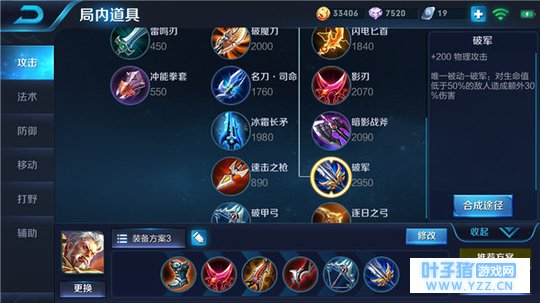 急速战靴、影刃、无尽战刃、泣血之刃、破甲弓、破军