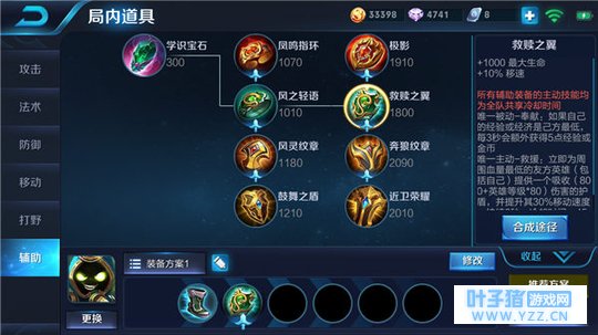 抵抗之靴和救赎之翼可以为太乙真人增加高额的移动速度加成,能够使太乙真人在前期可以快速的前往指定地点,即便在被敌人追击时,也可以利用增加的移动速度快速脱离敌人的攻击范围,并且抵抗之靴还可以赋予太乙真人一定量的法术防御以及一定百分比的韧性,让太乙真人能够在被敌人控住之后,更快的移除自身的异常状态,救赎之翼的主动技能可以为周围血量最低的英雄提供一个护盾,同时还可以增加其一定百分比的移动速度,使队友或自己可以在血量过低时,快速的脱离敌人的攻击范围。