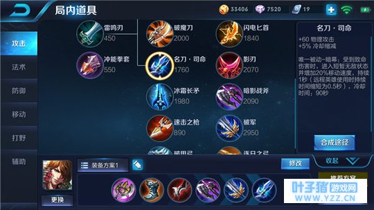 巨人之握、急速战靴、泣血之刃、暗影战斧、破军、名刀·司命