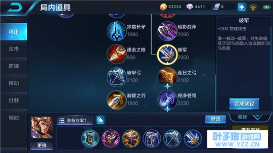 抵抗之靴+暴烈之甲+不祥征兆+魔女斗篷+破甲弓+破军
