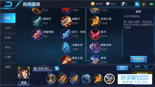 急速战靴+无尽战刃+宗师之力+破甲弓+闪电匕首+破军
