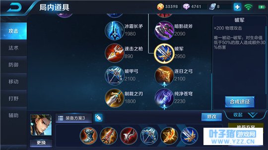 闪电匕首增加的攻击速度和暴击率能够让狄仁杰的输出能力大幅度的提升,并且闪电匕首的被动效果还可以让狄仁杰攻击敌人时,能够有一定的几率触发连锁闪电,可以对敌人造成非常高的伤害,让狄仁杰能够快速的击杀敌人,破军则可以为狄仁杰带来非常高的物理攻击加成,被动效果还可以让狄仁杰攻击敌人时,若是敌人的血量少于一定百分比,能够对敌人附加非常恐怖的伤害,让狄仁杰能够迅速的击杀敌人。