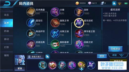 虚无法杖的被动效果赋予了诸葛亮强大的法术穿透能力,让诸葛亮即便与敌方坦克英雄作战,也可以利用自己的技能给予敌人大量的伤害,同时虚无法杖还可以增加诸葛亮的最大生命以及法术攻击,让诸葛亮的输出伤害更高。