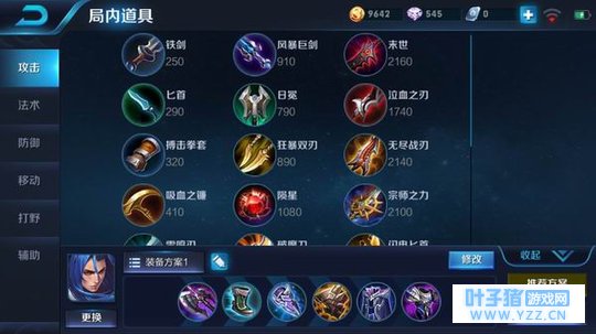 解析:暗影战斧能够增加物理攻击、冷却缩减和最大生命,且其被动还能增加物理穿透。这件装备很好地提高了橘右京前期的伤害能力。影忍之足能够增加一定的物理防御,且其被动能够提高橘右京的移动速度并减少橘右京所受到的普攻伤害。