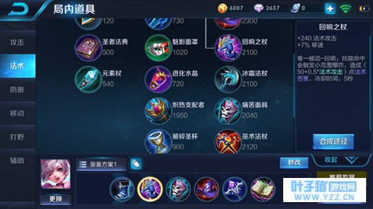 六神装:秘法之靴、回响之杖、痛苦面具、博学者之怒、虚无法杖、贤者之书