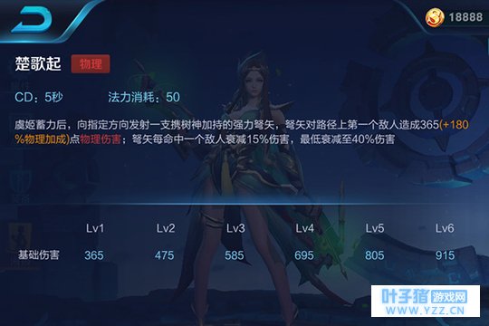 解析:一技能是虞姬主要消耗技能,在对线期,合理利用楚歌起可以快速清理兵线或者消耗敌方英雄血量,保证自身在对线期能打出优势,后期团战中,楚歌起拥有超远的射程和不俗的伤害,是消耗战的神技,当然前提是拥有良好的预判,能够尽可能打中敌方英雄。