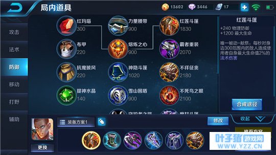 六神装:巨人之握/红莲斗篷,抵抗之靴,暗影战斧,冰痕之握,魔女斗篷,不祥征兆