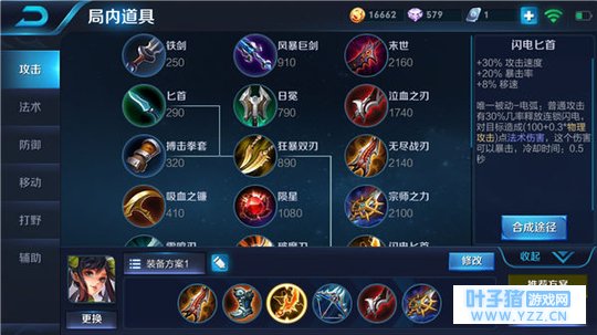 六神装:无尽战刃、急速战靴、闪电匕首、破甲弓、泣血之刃、宗师之力。