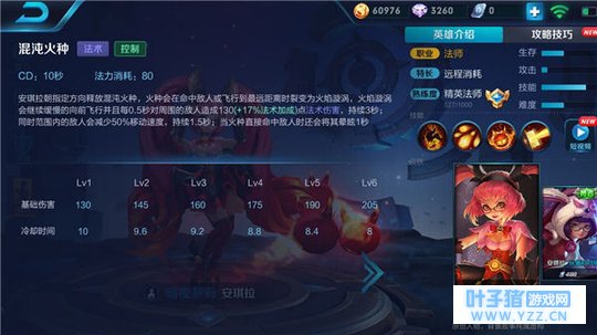 解析:核心控制技能,直接命中敌人后可以造成眩晕,对周围的英雄造成减速,并对敌人造成灼烧伤害,该技能的释放主要作用是对敌方造成眩晕和减速,不论是打团还是单兵作战都是非常重要的控制技能,单兵作战时使用该技能可以限制敌方的输出,是其他技能得以释放的前提,打团可以限制敌方前排英雄的移动并造成高额的伤害。
