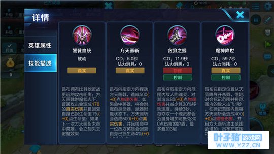 2、一技能造成物理伤害,如果命中英雄,将会附魔自身武器,武器附魔状态下,方天画戟会造成真实伤害,并且每命中一位敌方英雄会回复自身生命值,是一个十分全面的技能,也是吕布的主要输出手段。在命中敌方英雄后,普攻能造成真实伤害和血量回复,是吕布在团战中持续输出的重要保证;