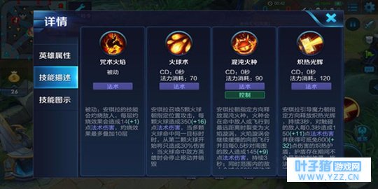 技能解析:安琪拉的技能会灼烧敌人,最多可叠加10层。该被动完美的展现了安琪拉这名英雄的技能特性,她的一二三技能全部是多段伤害,比如她的一技能五颗法球全部命中敌人,那么便会触发五层被动伤害;