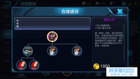 分析:物理防御装的选择,我们推荐大家做出暴烈之甲。此装备除了能让曹操收获物理防御和最大生命属性外,还能让曹操在受到伤害时提高自身的移速和输出伤害。此装备在前中期做出来不仅能增加曹操的站场能力,而且还能提高他的团战输出和机动性,确保玩家在前中期就能斩获优势。至于魔抗装的选择,我们还是建议大家做出容错率更高的魔女斗篷。此装备虽然不能像不死鸟之眼一样增加曹操的吸血属性,但是它却可以为他提供一个可以吸收法术伤害的护盾,进而减少曹操后期被敌人消耗的可能。