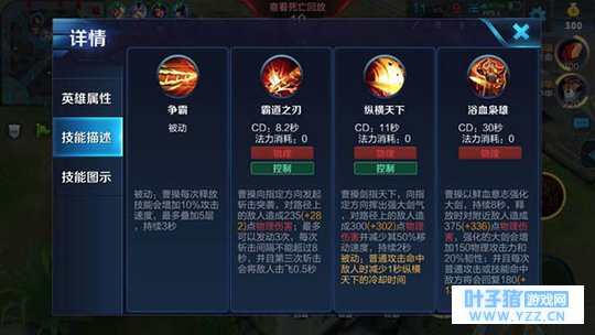 总的来说曹操看似上手难度比较低,但是实际操作起来却十分考究。玩家除了要保证自身的发育外,一定要注意其技能与普攻的衔接频率,切勿只使用普攻或者技能输出敌人。