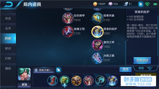 冷静之靴、救赎之翼、不祥征兆、反伤刺甲、冰霜法杖、贤者的庇护